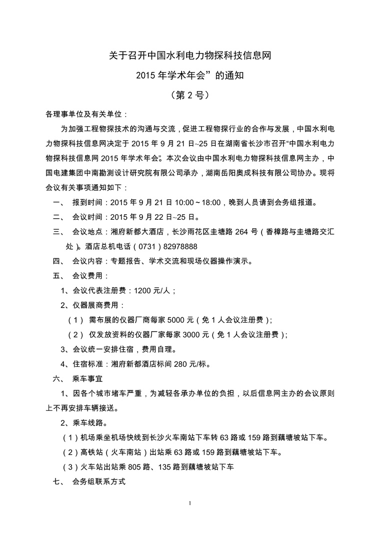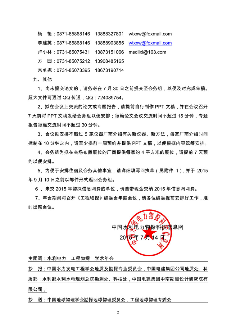 關(guān)于召開中國水利電力物探科技信息網(wǎng)2015年學(xué)術(shù)年會”的通知(第2號)