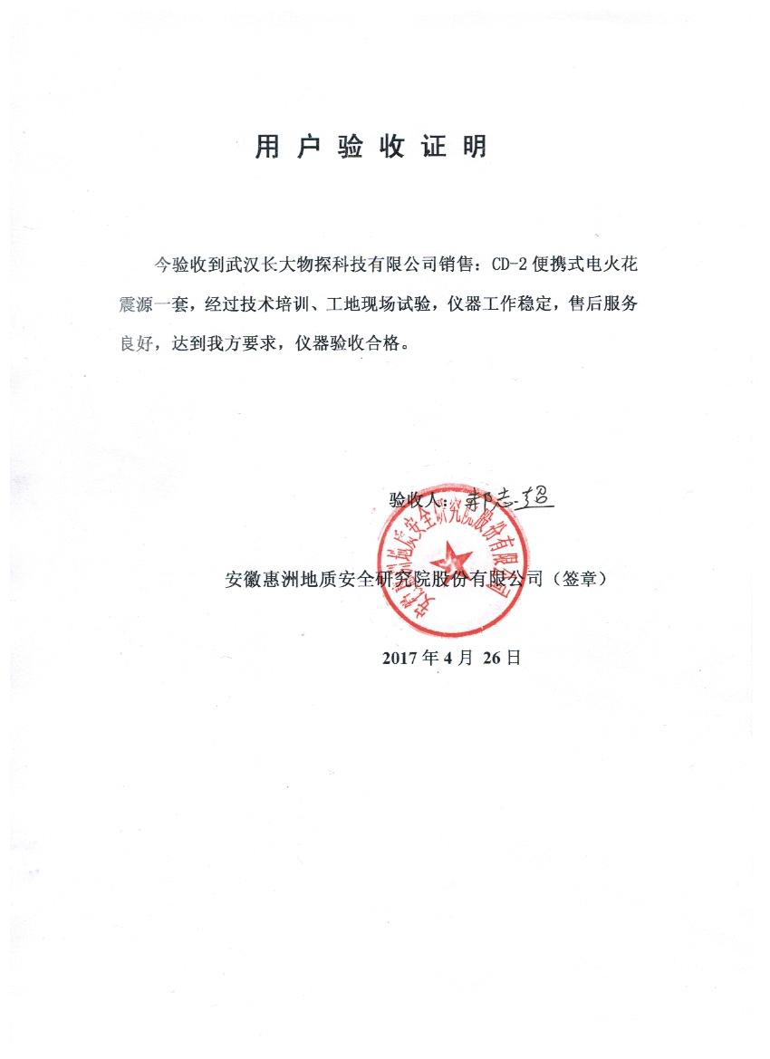 安徽惠洲院公司購買我公司電火花震源