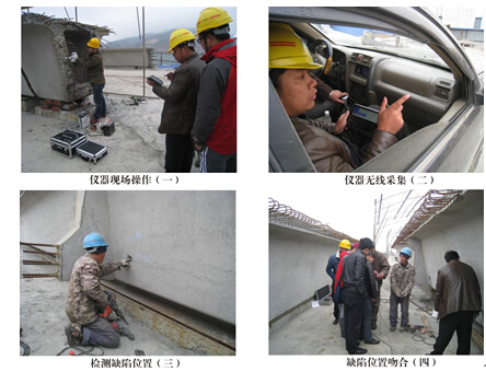 采用具有自主知識產(chǎn)權的譜能比數(shù)字信號智能處理算法和弦振波動法現(xiàn)場提取波紋管灌漿質(zhì)量及缺陷定位和預應力在各單只鋼絞線上的分項信息,并以成像的形式直觀顯示出來。
